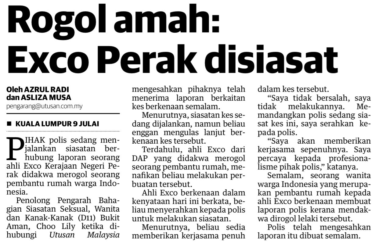 Bernama menyediakan sumber terkini maklumat berita sahih dan komprehensif kepada umum dan agensi media. Keputusan kes rogol pembantu rumah warga Indonesia membabitkan ADUN Tronoh Paul Yong Choo Kiong yang. Terdapat banyak kes di mahkamah Malaysia yang berkaitan dengan penganiayaan rasmi Hindu.